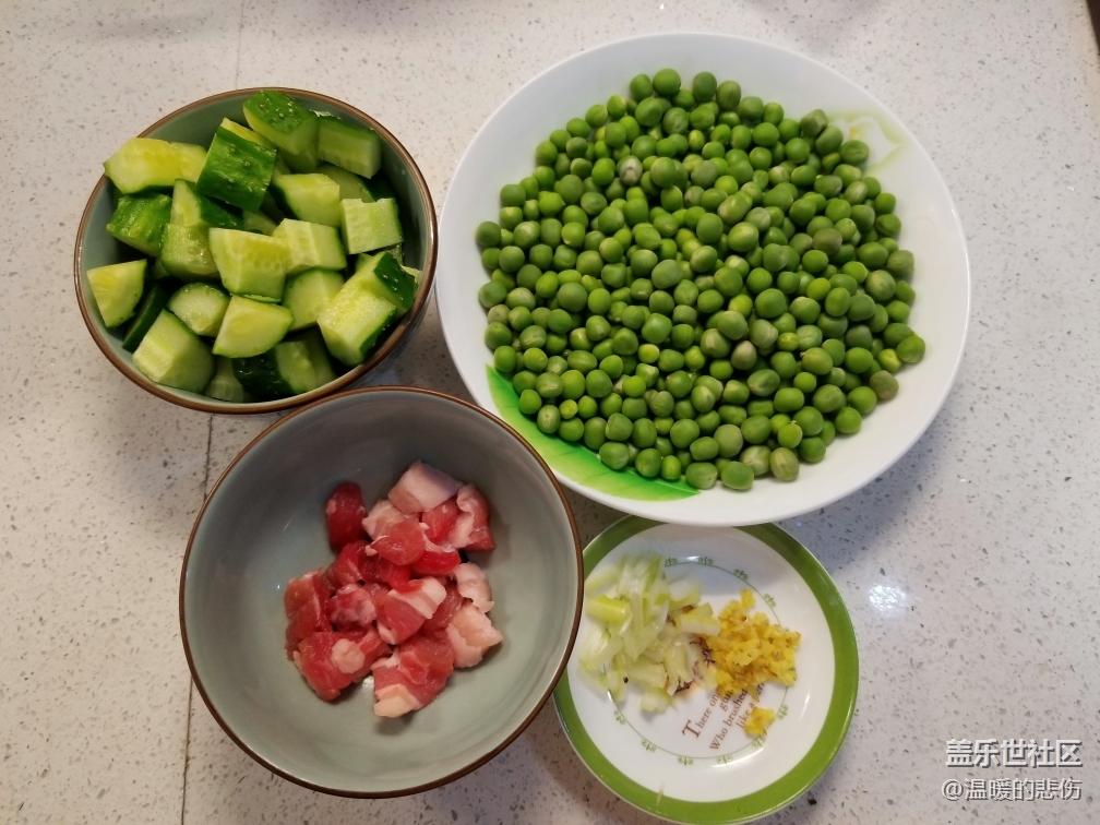 豌豆,五花肉,黃瓜,蔥姜沫