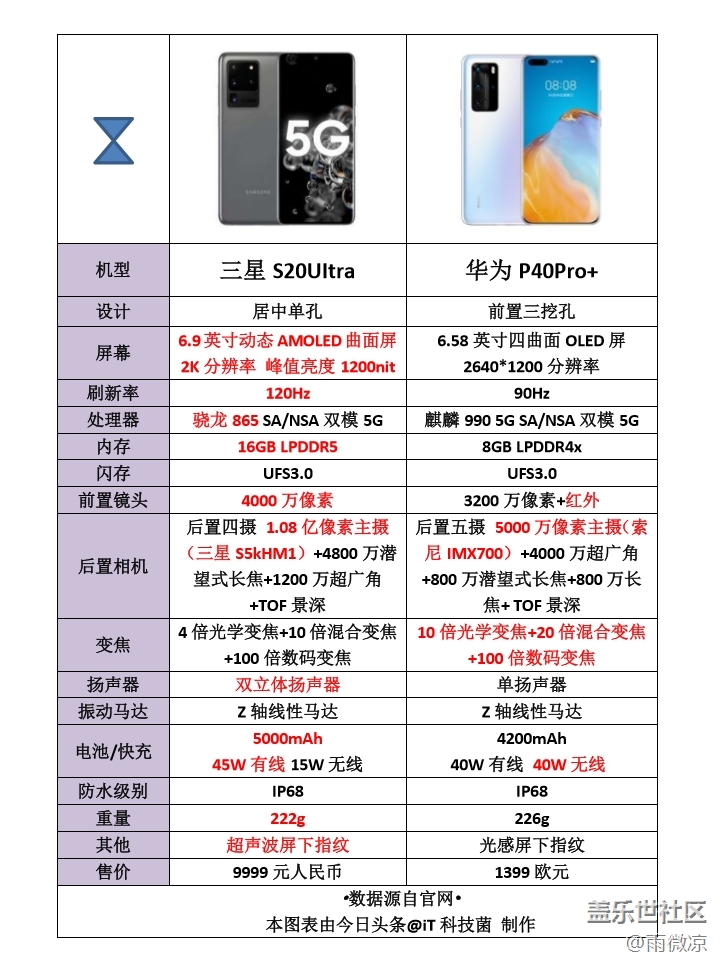 帖子名稱: 三星S20 UItra和華為P40 Pro+詳細(xì)對比圖