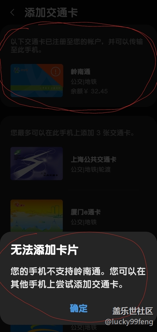 之前用的S10 上的嶺南通,已經(jīng)移出,后面買了S20 登錄了原三星賬戶,為什么無法移回到新的手機(jī)S20 上?如圖