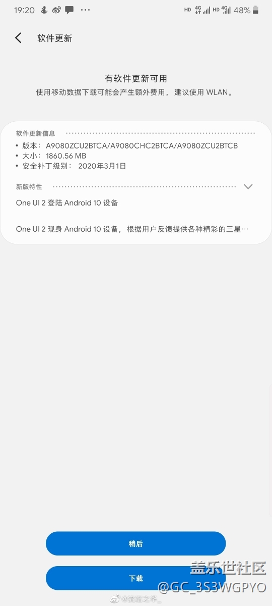 帖子名稱: 三星A90 5G推送了基于Android 10ui2.0