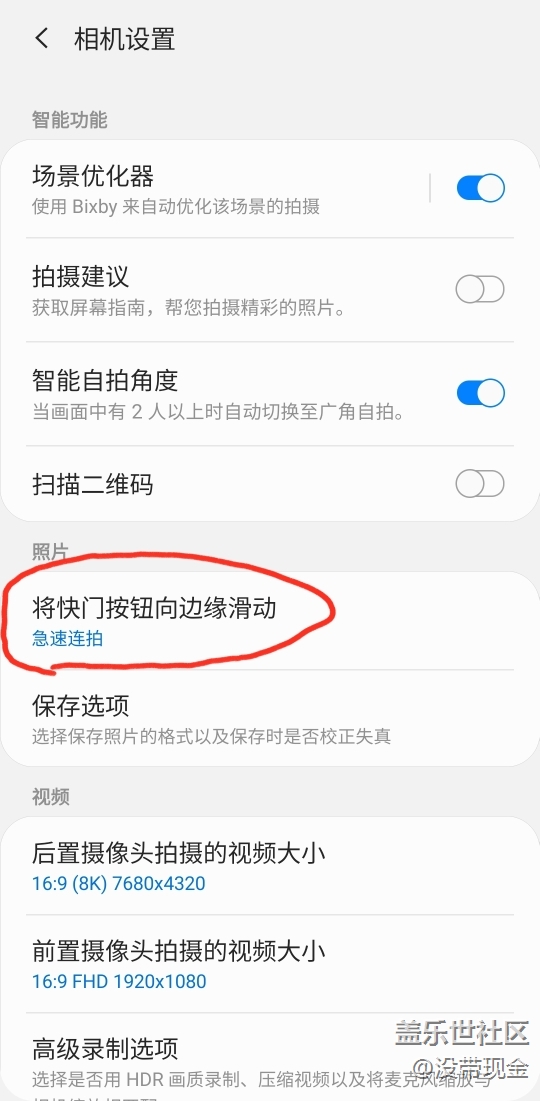 建議把“將快門按鈕向邊緣滑動(dòng)”設(shè)置成可關(guān)閉以防誤觸 圖片