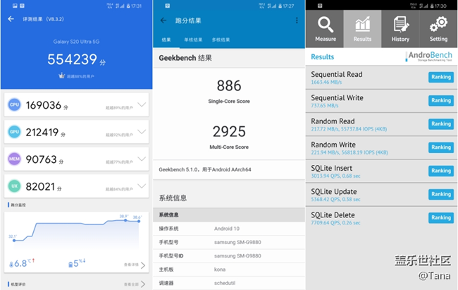 20年旗艦機(jī)標(biāo)配曉龍865,想必不用再啰嗦了,我認(rèn)為現(xiàn)在旗艦性能已經(jīng)完全夠用,跑分互相比較啥的完全沒(méi)必要,不過(guò)按照慣例,也給大家放上。儲(chǔ)存方面,當(dāng)然也是旗艦標(biāo)配RAM:LPDDR5、ROM:UFS3.0。