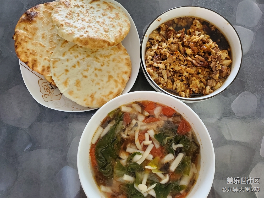 發(fā)面燒餅來(lái)幾個(gè),有葷有素蔬菜湯配一碗。
