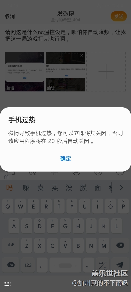 游戲溫度導(dǎo)致手機過熱,系統(tǒng)20秒后強制關(guān)閉 圖片
