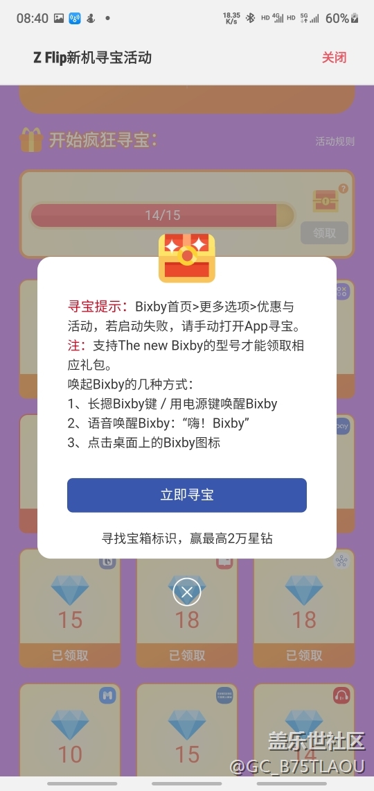 為啥我的bixby新機尋寶打開后就是這樣領(lǐng)不到 圖片