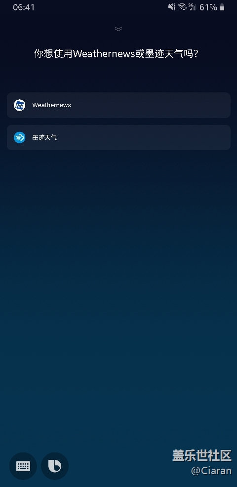每次問bixby天氣都要問我是使用weathernews或者墨跡天氣,我就想以后默認一個