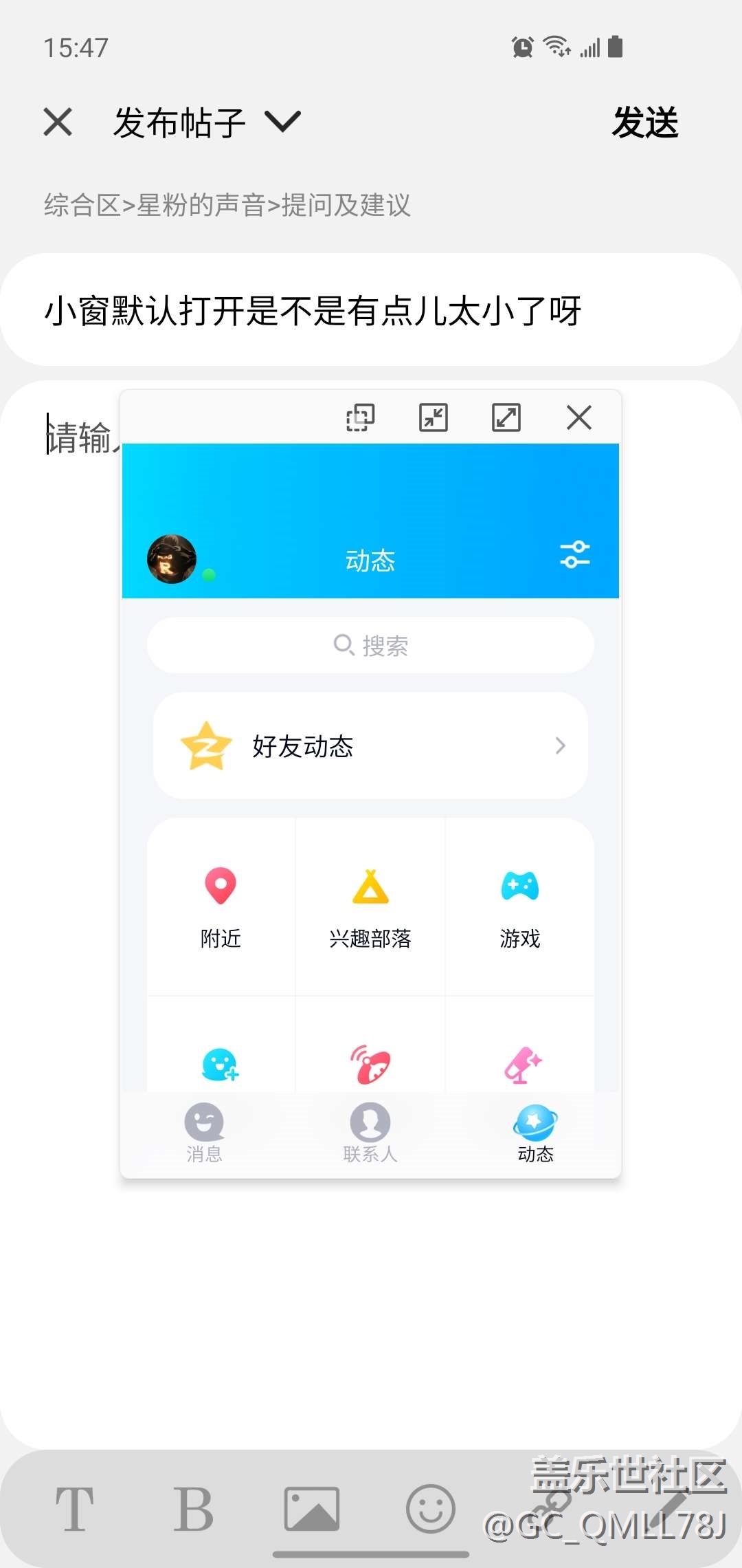 小窗默認(rèn)打開是不是有點(diǎn)兒太小了呀 圖片