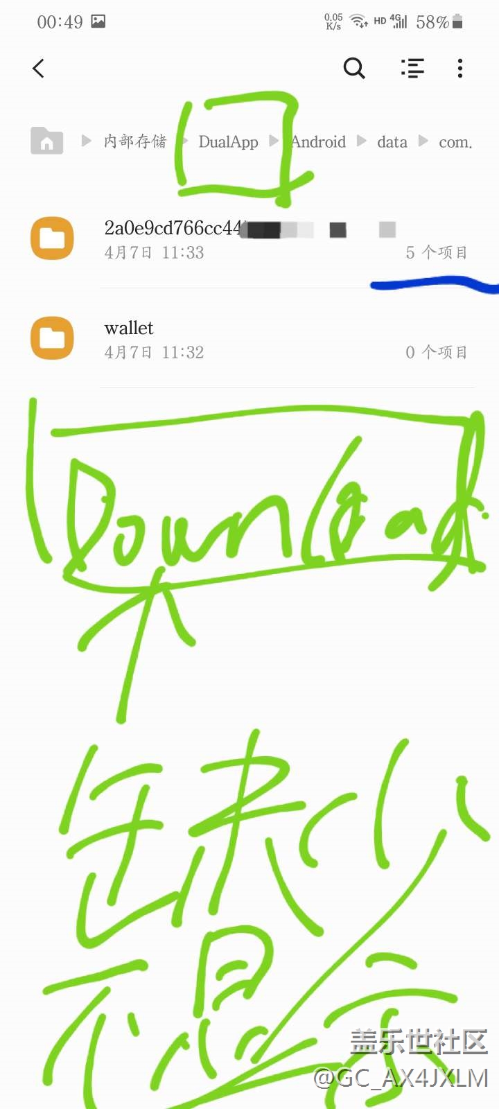 除分身微信應(yīng)用的download文件夾整個(gè)不顯示。畫藍(lán)色的的文件夾,微信中顯示有31個(gè)文件,而我的文件app中才顯示有5個(gè)文件。說明涉及分身微信應(yīng)用的本地文件和文件夾好多都無法顯示?。。?!