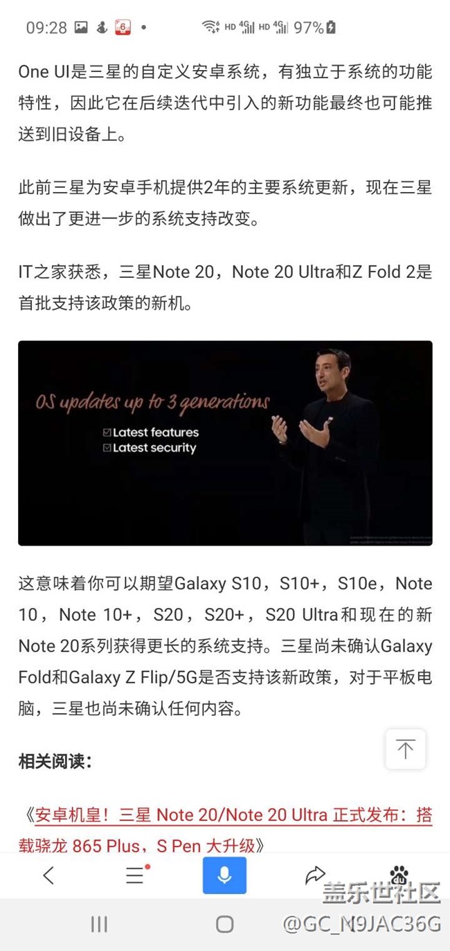 帖子名稱 三星宣布 Galaxy 手機(jī)提供 3 年主要系統(tǒng)更新:包