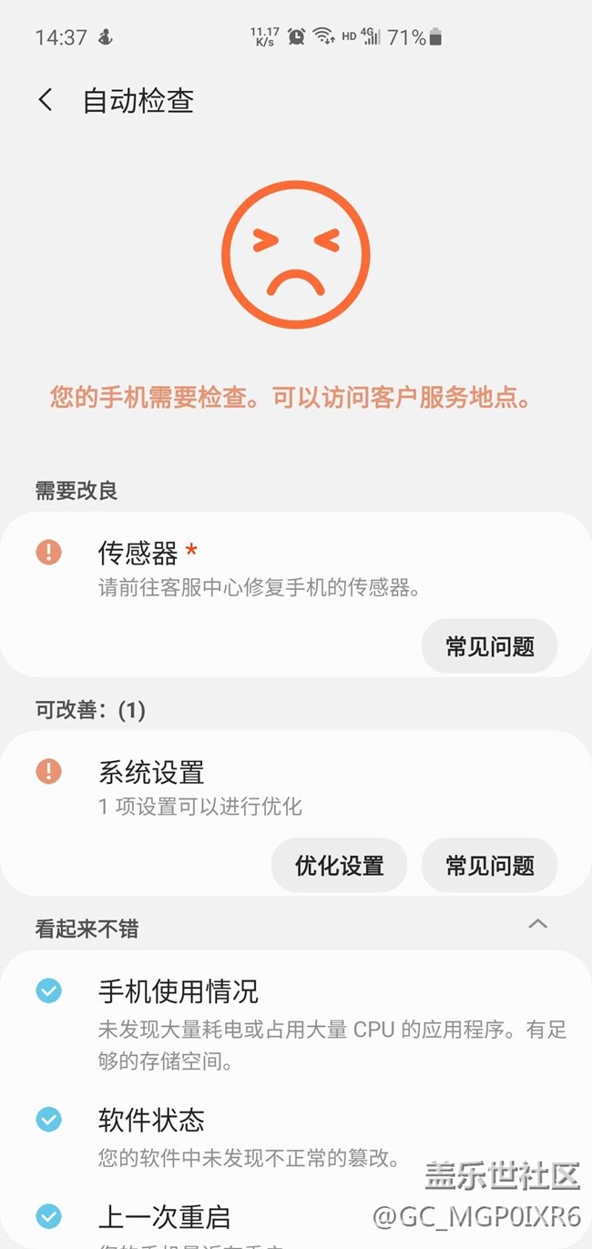 社區(qū)檢測提示傳感器有問題 圖片