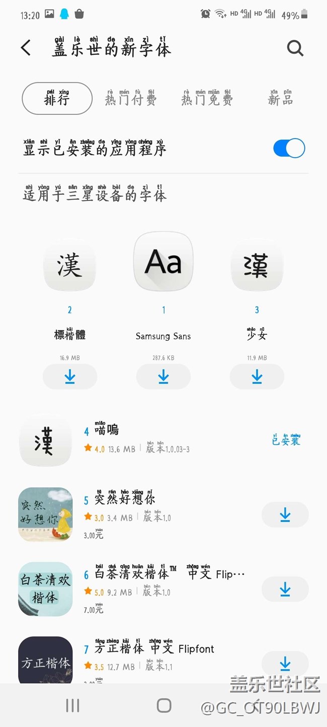 系統(tǒng)設(shè)置顯示字體里面只有已經(jīng)下載的,已購買但未下載的完全沒地方找啊,總不能一個個點開去看吧